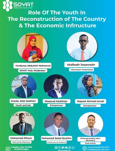 At the heart of my work is the belief that great ideas thrive when people come together. Through initiatives like SOYAT Hub, the Somali Youth Innovation Summit, and Resilience Society, I create spaces where young innovators, entrepreneurs, and community members can collaborate, learn, and grow.